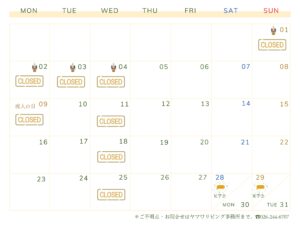 3月の定休日のお知らせ